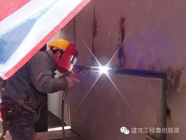 钢板厚度主要有20mm、30mm、40mm、60mm,焊缝为双面坡口焊,一级焊缝,采用CO2气体保护焊进行焊接,熔池可见度好,操作方便,焊丝自动送丝,敷化金属量大,质量稳定。